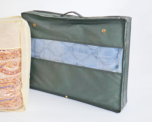 寝具用品 羽根布団・掛け布団・敷き布団等、一般的な布団袋からマットレス用、クッション用等、完全オリジナルでの製作が可能です。 ・ 最小ロット:約300枚〜 ・ 生産日数:約30日〜 ・ 用途に合わせ、生地や形状、サイズを自由に設定可能です。 注文のお問い合わせへ 制作例 ■トトちゃん通信Vol.8■布団収納ケース ■トトちゃん通信Vol.7■~衣替えシーズン到来! マットレス用袋 羽布団用袋 1