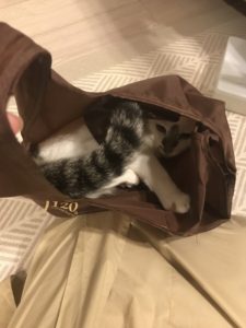 袋の中は落ち着くらしく、気が済むまで袋に入ってくつろいでます。