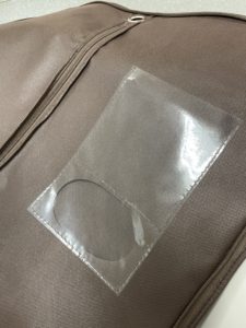 内側には、ポケットと中の洋服の色柄を確認できる透明窓付き。