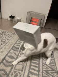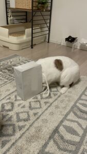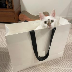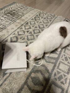 今日のトトちゃんは新しく持ち帰った紙袋(コスメ用の小さいサイズ)に興味深々。