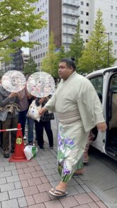 去る九月場所の十四日目。初めての入り待ちに行ってきました~!(チケットは無いので取り組みは観られず、ただ力士を拝むためだけに行きました笑)