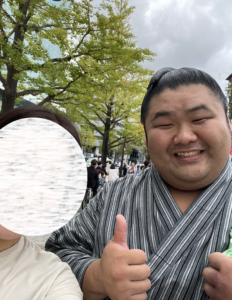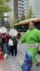 今回お目当てだった私の推し力士、若元春関。なんと待っていたのと違う方面から来てしまいお顔を拝めず、、涙、、遠い、、。