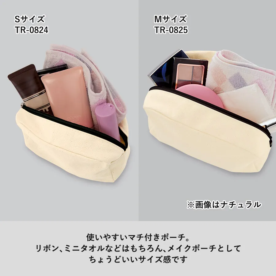 全体にマチがついてころんとした形状となっていますので、バッグにも収まりやすく、化粧道具やステーショナリー、かさばる小物をまとめてすっきり収納できます。