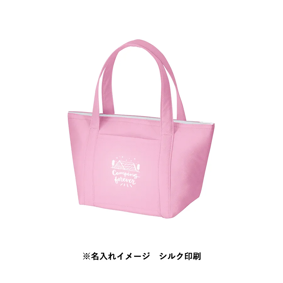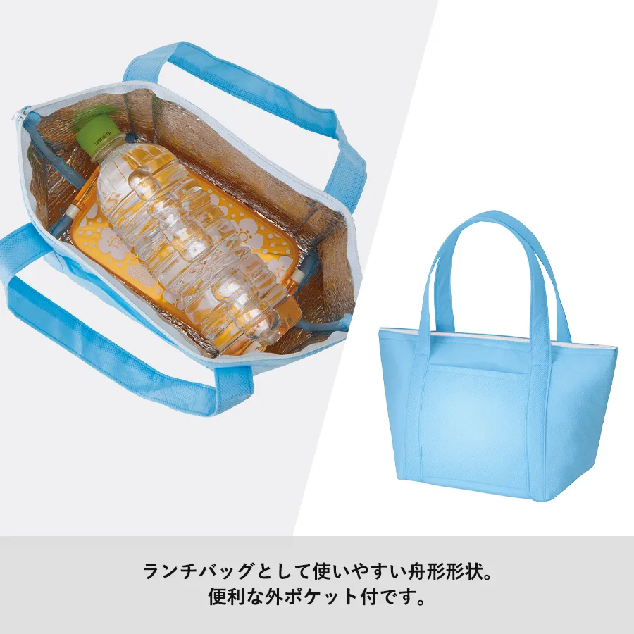 軽くて丈夫な不織布を用いた底マチ付の保冷トートバッグです。