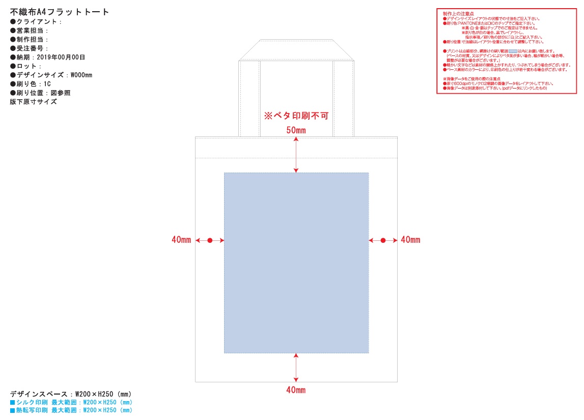 軽くて丈夫な不織布を用いたマチなしバッグです。